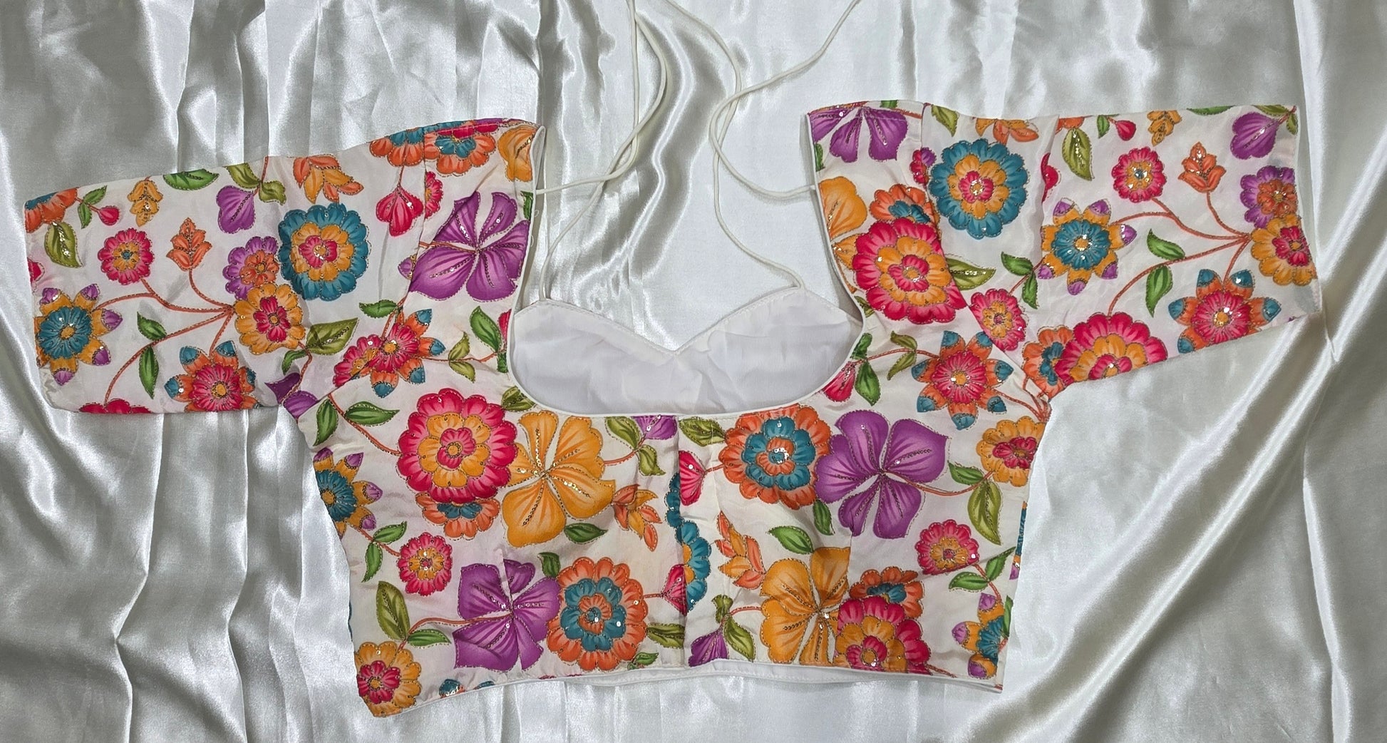 Cream flower print Crepe Silk Blouse
